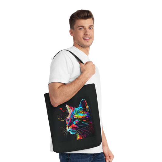 Colorful Cat Art Woven Tote Bag - Stylish Eco-Friendly Shopping Companion